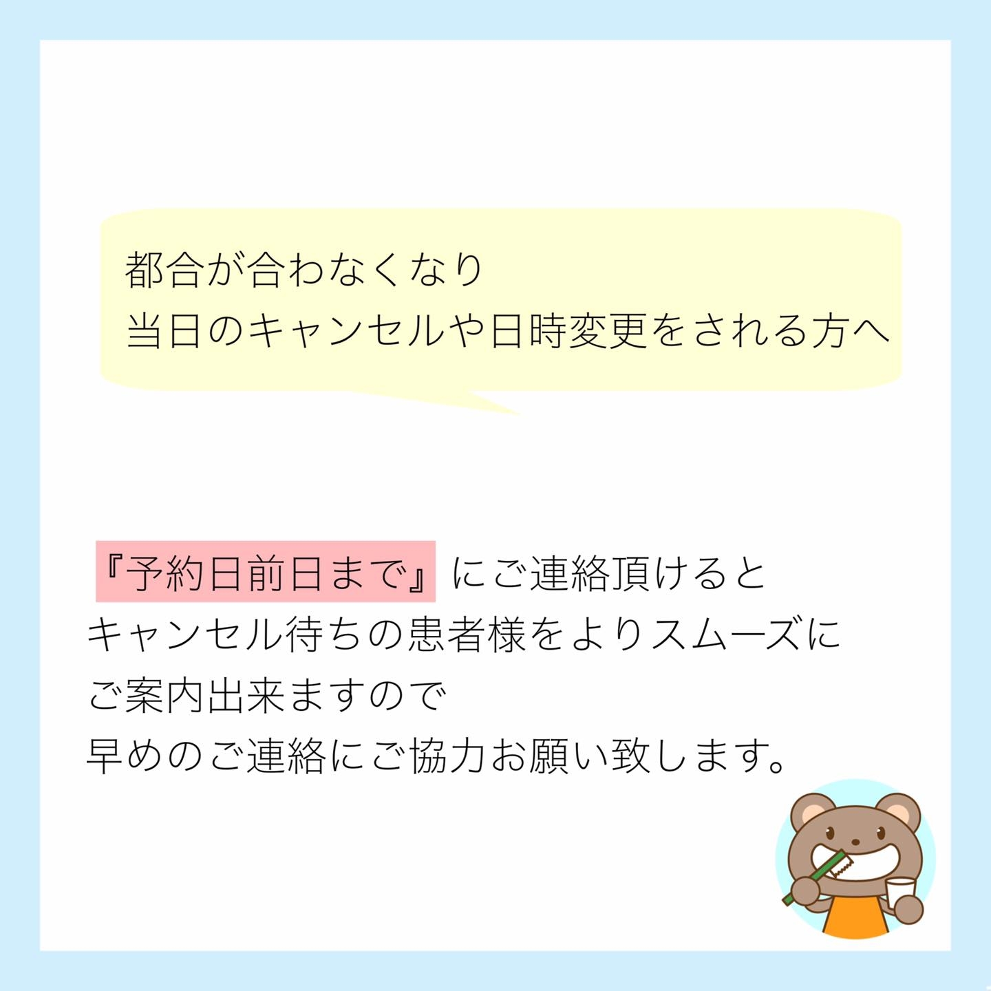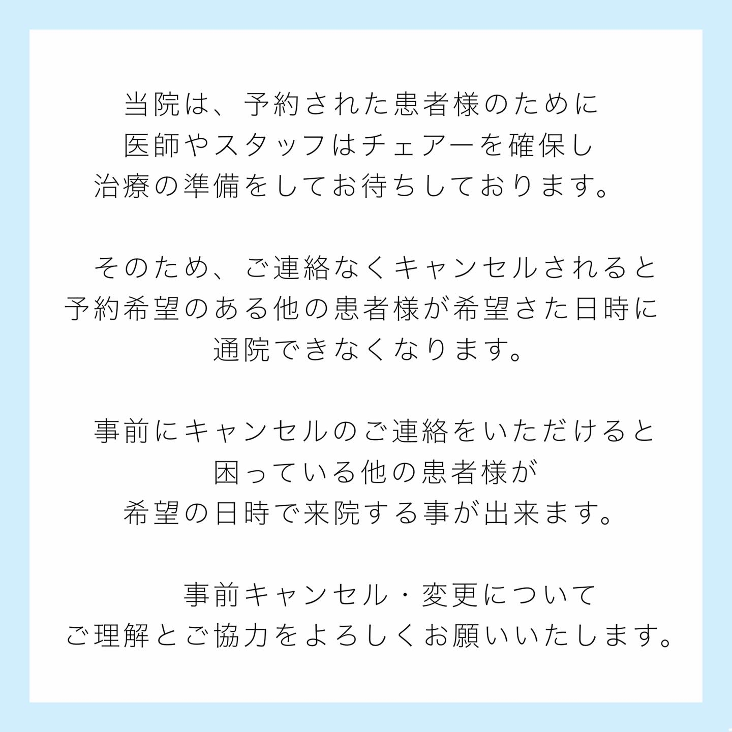 予約のキャンセルや日時変更される方は予約日の前日までにご連絡頂けるようご協力お願い致します。
